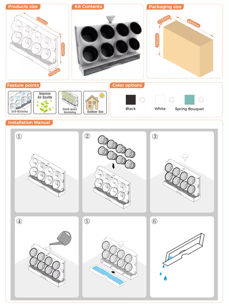 Our Kitchen Countertop garden is a desktop vertical garden consisted in eight of single 3" growing pots & self-watering built-in interior. Pixel garden desktop is the pre-assembled vertical garden desktop that allows you to add some 'green touch' to your home & office.