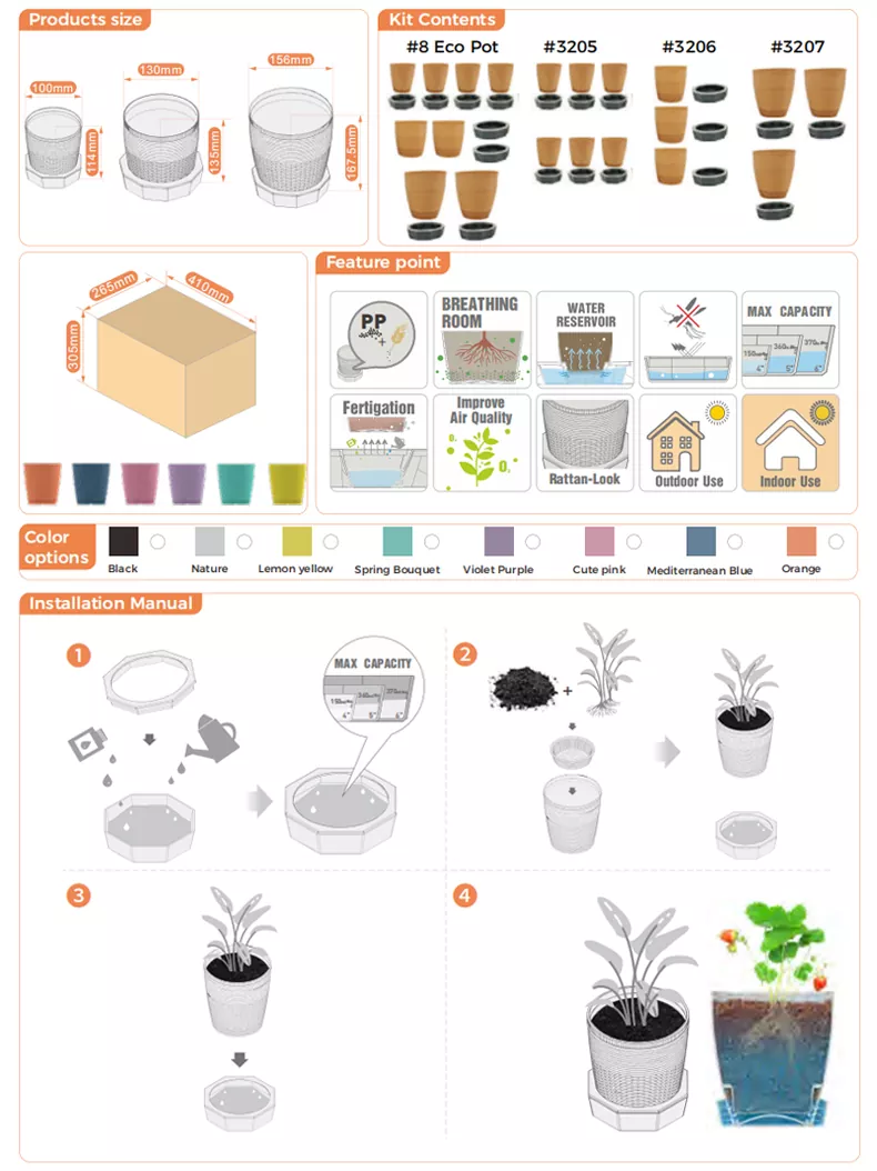 Watex is a professional China Eco Gardening Plastic Flower Pot Manufacturers. This product is suitable for home environment decoration. You can plant your favorite plants with it.We have 30 years of experience in foreign trade exports. We look forward to becoming your long-term partner in China.