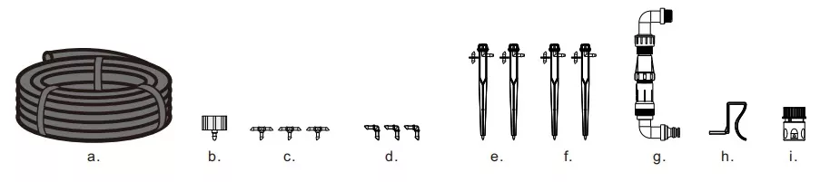 From pipelines, joints to hooks and connectors, the entire set of accessories is provided at one time, eliminating the need to purchase them separately and avoiding the problem of mismatched accessories, this enables the irrigation setup to be completed in one step.