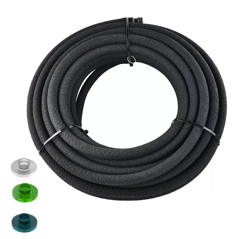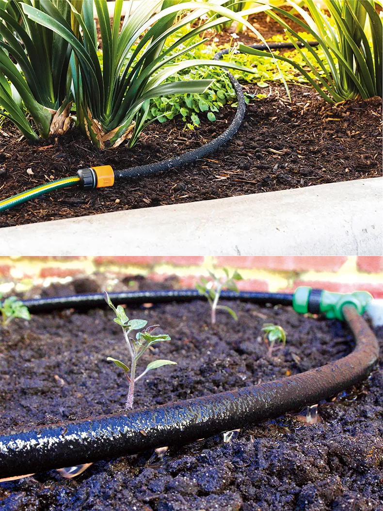 The watex Garden Dripping Hose Series is made of durable recycled rubber to form a flexible hose with built-in micro-pores. When connected to a water source, water slowly seeps through the capillary pores in the tube wall under water pressure.