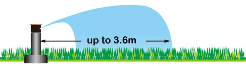 Adjustable and fixed angle sprinkler heads with a maximum spray range of 3.6 meters.