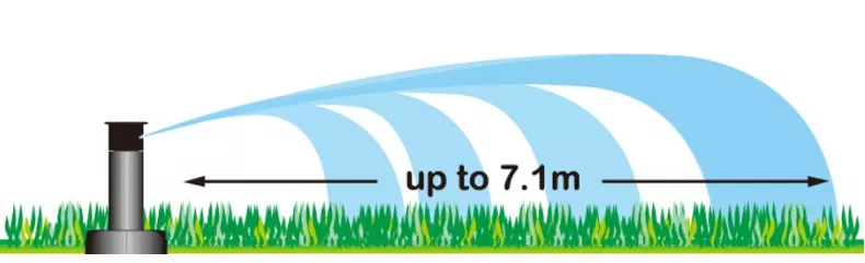 Rotary sprinkler heads with a maximum spray range of 7.1 meters.