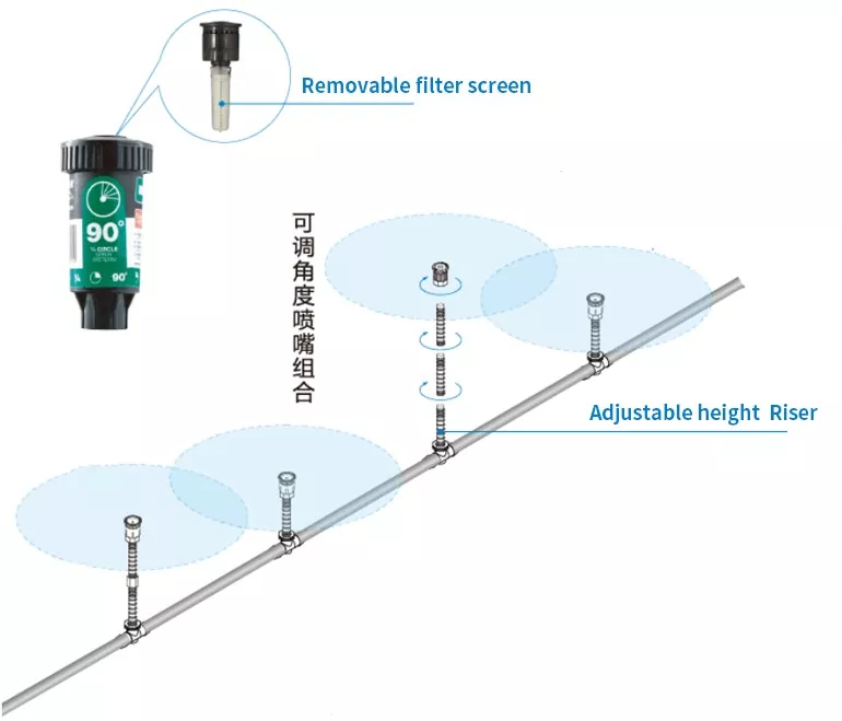 Adjustable-angle in-ground spray head (allows users to customize the spray range without nozzle replacement).